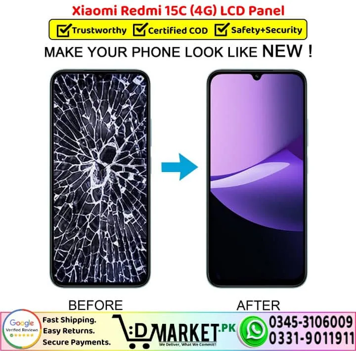 Option 2: Online Professional Repair with DMarket.pk Want expert repair from the comfort of your home? Our professional repair services at DMarket.pk make it easy! Simply visit our Repair Services page, fill out the form, and our agent will contact you with complete details and total charges. If you’re satisfied, courier your device to us. We’ll fix your Xiaomi Redmi 15C 4G LCD Panel screen and deliver it back fully repaired. Pay via cash on delivery only when you receive your fixed device. We believe this unique service sets us apart in Pakistan!