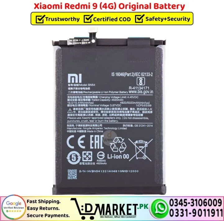 Order the Xiaomi Redmi 9 Original Battery online from DMarket.pk with fast delivery, or buy directly from our Service Centre, both with OEM-grade tested quality.