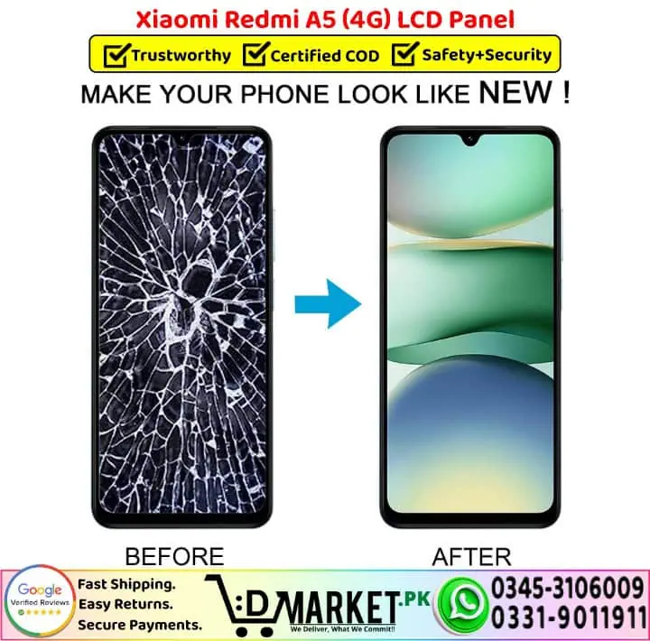 Option 2: Online Professional Repair with DMarket.pk Want expert repair from the comfort of your home? Our professional repair services at DMarket.pk make it easy! Simply visit our Repair Services page, fill out the form, and our agent will contact you with complete details and total charges. If you’re satisfied, courier your device to us. We’ll fix your Xiaomi Redmi A5 4G LCD Panel screen and deliver it back fully repaired. Pay via cash on delivery only when you receive your fixed device. We believe this unique service sets us apart in Pakistan!
