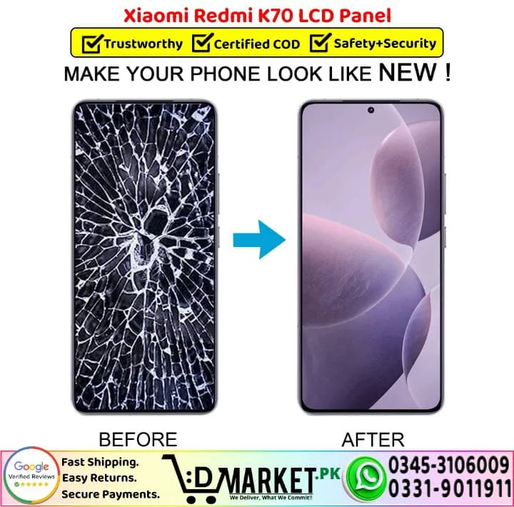 Option 2: Online Professional Repair with DMarket.pk Want expert repair from the comfort of your home? Our professional repair services at DMarket.pk make it easy! Simply visit our Repair Services page, fill out the form, and our agent will contact you with complete details and total charges. If you’re satisfied, courier your device to us. We’ll fix your Xiaomi Redmi K70 LCD Panel screen and deliver it back fully repaired. Pay via cash on delivery only when you receive your fixed device. We believe this unique service sets us apart in Pakistan!