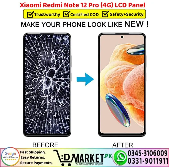 Option 2: Online Professional Repair with DMarket.pk Want expert repair from the comfort of your home? Our professional repair services at DMarket.pk make it easy! Simply visit our Repair Services page, fill out the form, and our agent will contact you with complete details and total charges. If you’re satisfied, courier your device to us. We’ll fix your Xiaomi Redmi Note 12 Pro 4G LCD Panel screen and deliver it back fully repaired. Pay via cash on delivery only when you receive your fixed device. We believe this unique service sets us apart in Pakistan!