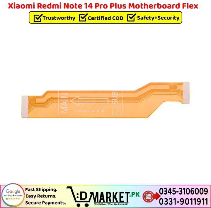 Option 2: Online Professional Repair with DMarket.pk Want expert repair from the comfort of your home? Our professional repair services at DMarket.pk make it easy! Simply visit our Repair Services page, fill out the form, and our agent will contact you with complete details and total charges. If you’re satisfied, courier your device to us. We’ll fix your Xiaomi Redmi Note 14 Pro Plus Motherboard Flex and deliver it back fully repaired. Pay via cash on delivery only when you receive your fixed device. We believe this unique service sets us apart in Pakistan!