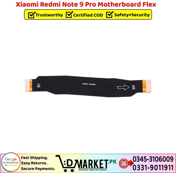 Option 2: Online Professional Repair with DMarket.pk Want expert repair from the comfort of your home? Our professional repair services at DMarket.pk make it easy! Simply visit our Repair Services page, fill out the form, and our agent will contact you with complete details and total charges. If you’re satisfied, courier your device to us. We’ll fix your Xiaomi Redmi Note 9 Pro Motherboard Flex and deliver it back fully repaired. Pay via cash on delivery only when you receive your fixed device. We believe this unique service sets us apart in Pakistan!