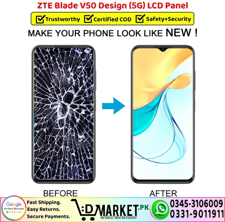 Option 2: Online Professional Repair with DMarket.pk Want expert repair from the comfort of your home? Our professional repair services at DMarket.pk make it easy! Simply visit our Repair Services page, fill out the form, and our agent will contact you with complete details and total charges. If you’re satisfied, courier your device to us. We’ll fix your ZTE Blade V50 Design 5G LCD Panel screen and deliver it back fully repaired. Pay via cash on delivery only when you receive your fixed device. We believe this unique service sets us apart in Pakistan!