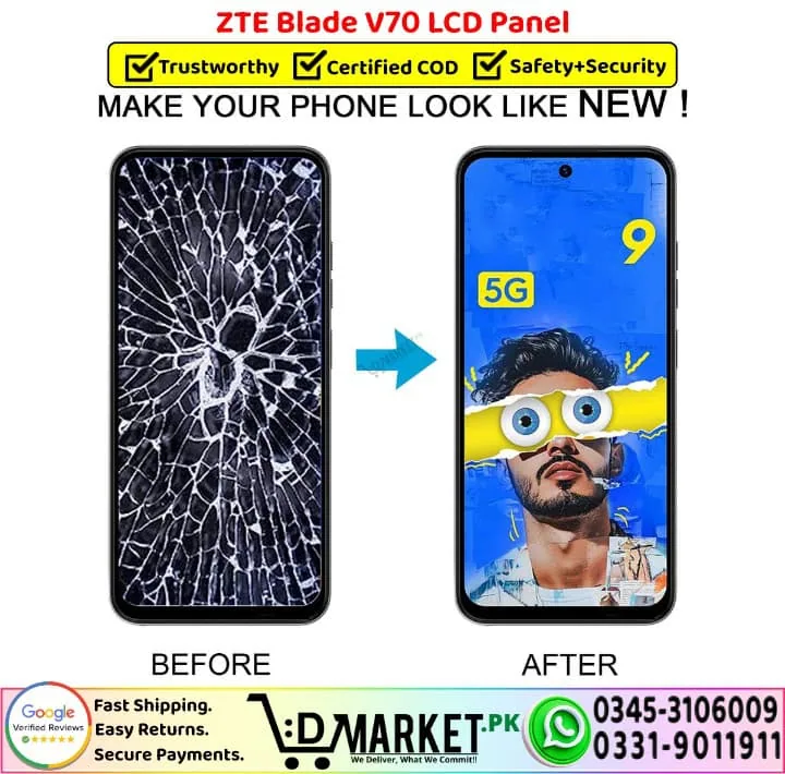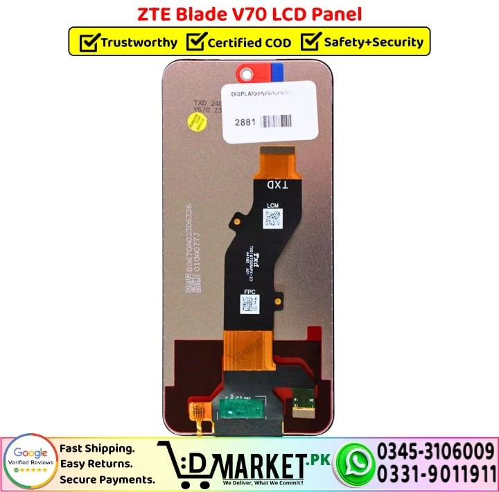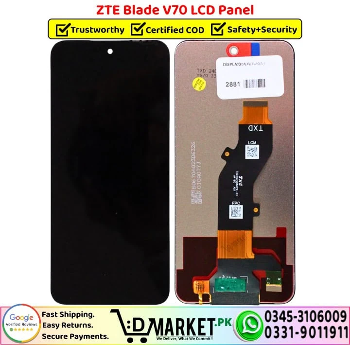 Option 2: Online Professional Repair with DMarket.pk Want expert repair from the comfort of your home? Our professional repair services at DMarket.pk make it easy! Simply visit our Repair Services page, fill out the form, and our agent will contact you with complete details and total charges. If you’re satisfied, courier your device to us. We’ll fix your ZTE Blade V70 LCD Panel screen and deliver it back fully repaired. Pay via cash on delivery only when you receive your fixed device. We believe this unique service sets us apart in Pakistan!